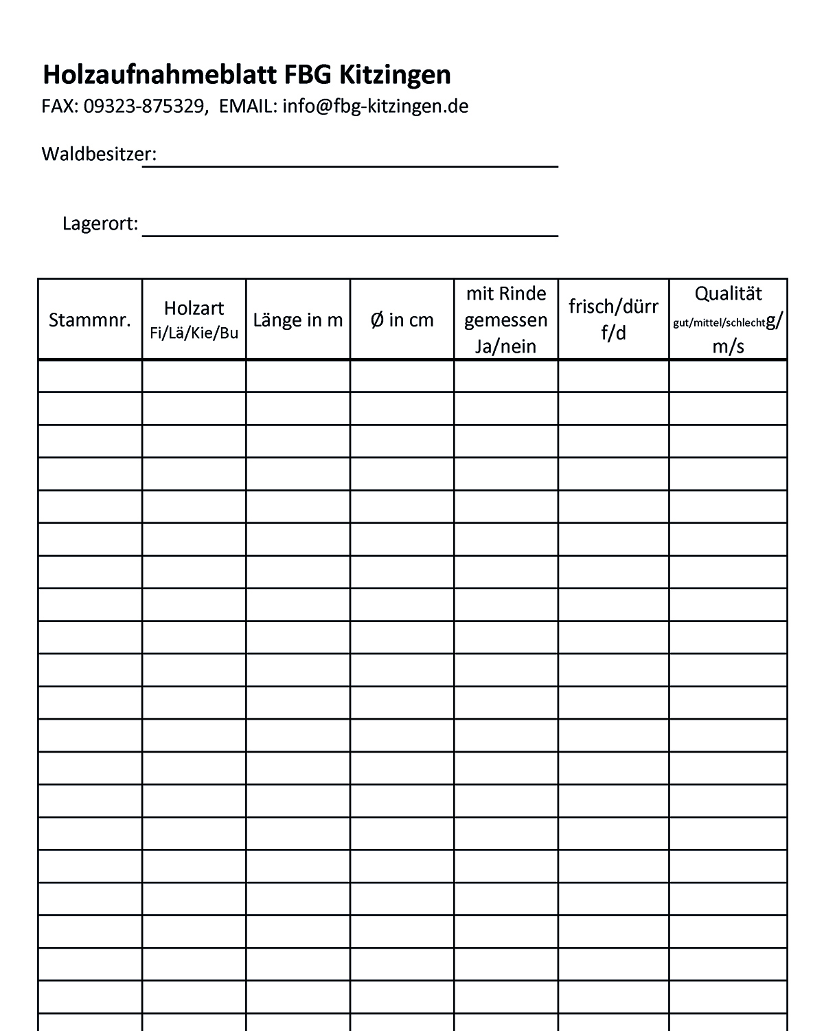 Holzaufnahmeblatt