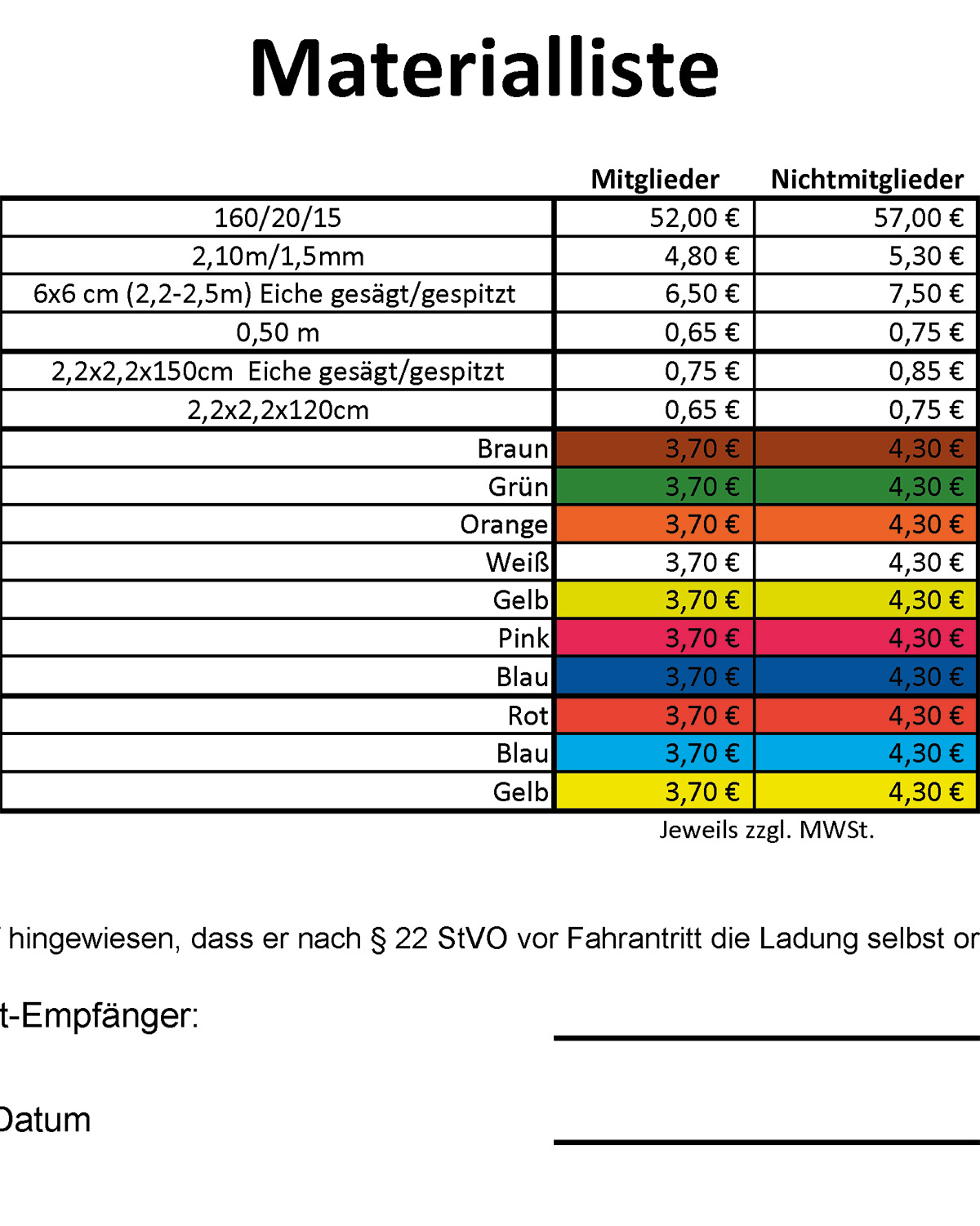 Materialliste zur